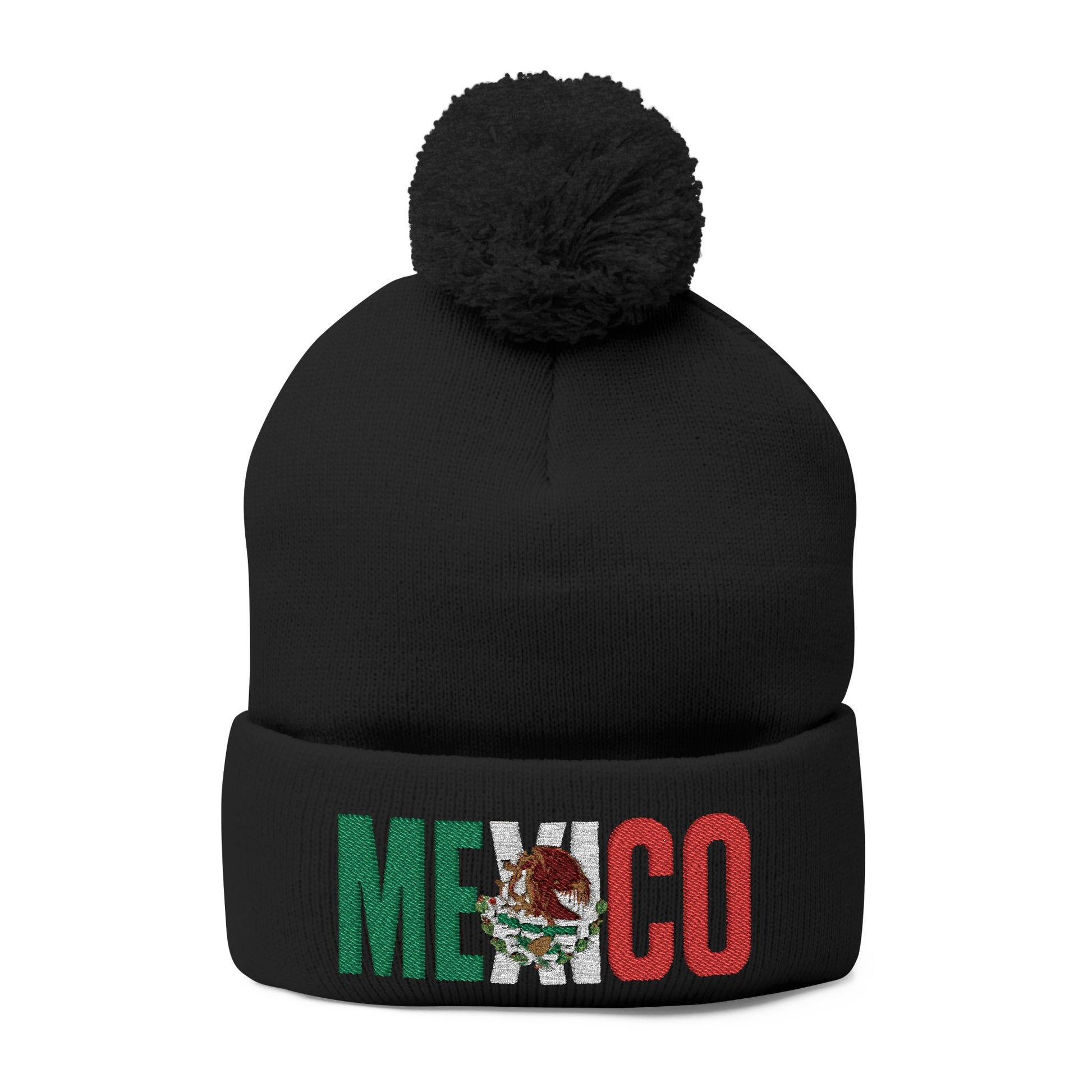 Mexico Embroidered Pom-Pom Beanie - Cozy Winter Knit Cap