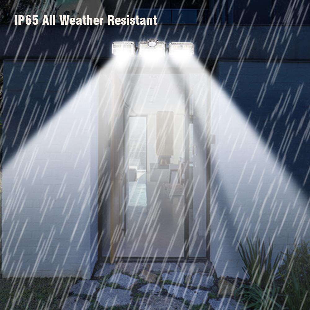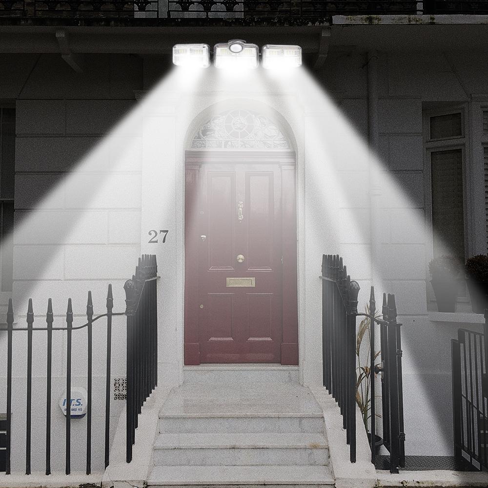 The solar outdoor lights are built-in with 122 bright LEDs and have 3 adjustable heads ensuring that they can deliver ultra-high brightness illumination for a wide area. The 270ºrotatable angle makes it very flexible to adjust the angle and get the solar panel much sunlight power at a maximum degree.